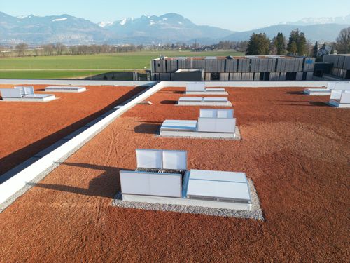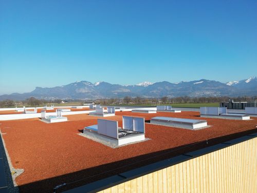 In den Produktionshallenwurden insgesamt 32 Doppelklappen gekoppelt (2205 x 5820 mm) integriert. Davon entfallen 12 Doppelklappen(2205 x 2735 mm) auf ein RWA-System mit pneumatischer Steuerung und thermischer Auslösung bei 68° gemäß EN12101-2. Weitere12 Doppelklappen gleicher Größe wurden mit elektrischer Lüftungssteuerung(230V, 300 mm Hub) und einer starren Haube als Belichtungsfläche ausgestattet. Ergänzend wurden 8 gekoppelte, starre Doppelklappen (Belichtungsfläche) sowie32 Absturzgitter verbaut.